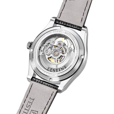Zegarek marki Festina ma stal chirurgiczna kopertę 40 mm średnicy i jest wyposażony w pasek z materiału skóra. Wewnątrz koperty jest mechanizm Soprod i zegarek ma także szkiełko Sapphire.