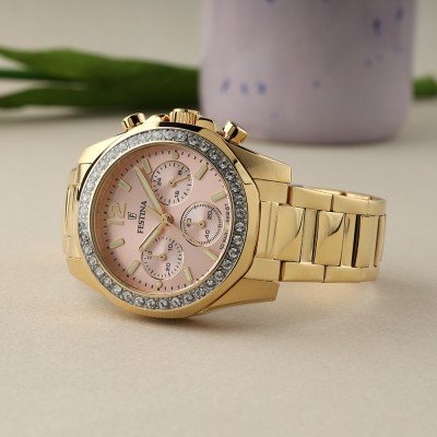 Zegarek marki Festina ma stal chirurgiczna kopertę 38 mm średnicy i jest wyposażony w pasek z materiału stal chirurgiczna. Wewnątrz koperty jest mechanizm Miyota i zegarek ma także szkiełko Mineralny.