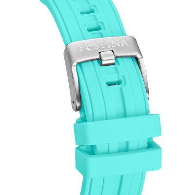 Zegarek marki Festina ma stal chirurgiczna kopertę 46 mm średnicy i jest wyposażony w pasek z materiału guma. Wewnątrz koperty jest mechanizm Miyota i zegarek ma także szkiełko Mineralny.