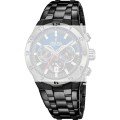 Pasek do zegarka Festina jest wykonany z materiału stal nierdzewna i jest zamocowany do zegarka za pomocą… stalowe sworznie. Ten pasek ma szerokość 28 mm i zamyka się za pomocą zapięcie zatrzaskowe z przyciskami. Ten pasek nie ma prostego mocowania, co oznacza, że pasuje wyłącznie do zegarków z poniższej listy.