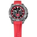 Zegarek marki Festina ma stal chirurgiczna kopertę 45.5 mm średnicy i jest wyposażony w pasek z materiału guma. Wewnątrz koperty jest mechanizm Miyota i zegarek ma także szkiełko Mineralny.