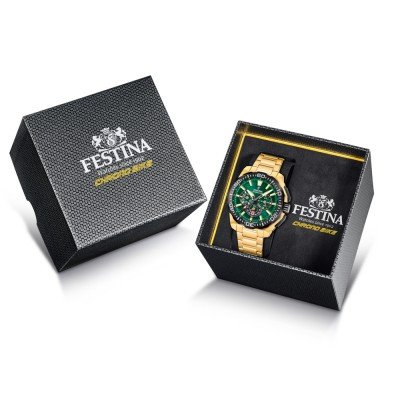 Zegarek marki Festina ma stal chirurgiczna kopertę 45.5 mm średnicy i jest wyposażony w pasek z materiału stal chirurgiczna. Wewnątrz koperty jest mechanizm Miyota i zegarek ma także szkiełko Mineralny.