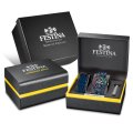 Zegarek marki Festina ma stal chirurgiczna kopertę 46 mm średnicy i jest wyposażony w pasek z materiału stal chirurgiczna. Wewnątrz koperty jest mechanizm Miyota i zegarek ma także szkiełko Mineralny.