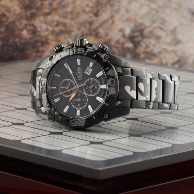 Zegarek marki Festina ma stal chirurgiczna kopertę 45 mm średnicy i jest wyposażony w pasek z materiału stal chirurgiczna. Wewnątrz koperty jest mechanizm Miyota i zegarek ma także szkiełko Sapphire.