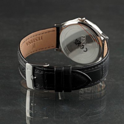 Zegarek marki Festina ma stal chirurgiczna kopertę 39 mm średnicy i jest wyposażony w pasek z materiału skóra. Wewnątrz koperty jest mechanizm Miyota i zegarek ma także szkiełko Mineralny.