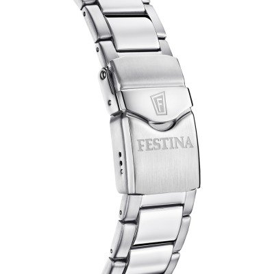 Zegarek marki Festina ma stal chirurgiczna kopertę 46 mm średnicy i jest wyposażony w pasek z materiału stal chirurgiczna. Wewnątrz koperty jest mechanizm Miyota i zegarek ma także szkiełko Sapphire.