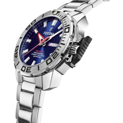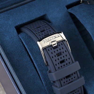 Zegarek marki Festina ma stal chirurgiczna kopertę 46 mm średnicy i jest wyposażony w pasek z materiału stal chirurgiczna. Wewnątrz koperty jest mechanizm Miyota i zegarek ma także szkiełko Sapphire.