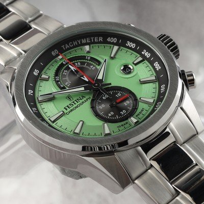 Zegarek marki Festina ma stal chirurgiczna kopertę 44 mm średnicy i jest wyposażony w pasek z materiału stal chirurgiczna. Wewnątrz koperty jest mechanizm Miyota i zegarek ma także szkiełko Mineralny.