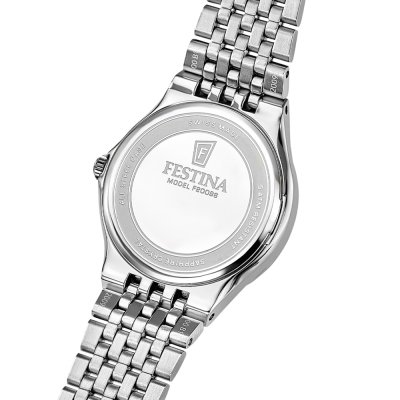 Zegarek marki Festina ma stal chirurgiczna kopertę 29 mm średnicy i jest wyposażony w pasek z materiału stal chirurgiczna. Wewnątrz koperty jest mechanizm Ronda i zegarek ma także szkiełko Sapphire.
