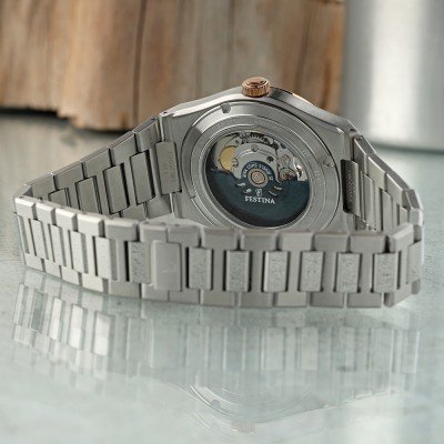 Zegarek marki Festina ma stal chirurgiczna kopertę 40 mm średnicy i jest wyposażony w pasek z materiału stal chirurgiczna. Wewnątrz koperty jest mechanizm Soprod i zegarek ma także szkiełko Sapphire.