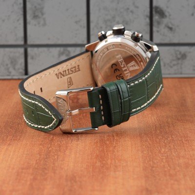 Zegarek marki Festina ma stal chirurgiczna kopertę 44.5 mm średnicy i jest wyposażony w pasek z materiału skóra. Wewnątrz koperty jest mechanizm Miyota i zegarek ma także szkiełko Mineralny.