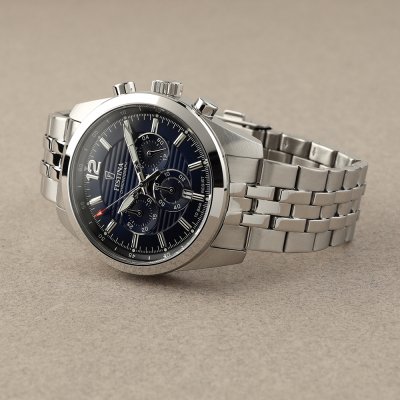 Zegarek marki Festina ma stal chirurgiczna kopertę 43.8 mm średnicy i jest wyposażony w pasek z materiału stal chirurgiczna. Wewnątrz koperty jest mechanizm Miyota i zegarek ma także szkiełko Mineralny.
