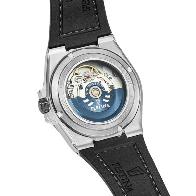 Zegarek marki Festina ma stal chirurgiczna kopertę 42 mm średnicy i jest wyposażony w pasek z materiału guma. Wewnątrz koperty jest mechanizm Soprod i zegarek ma także szkiełko Sapphire.