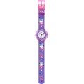 Zegarek marki Flik Flak ma Plastik / Żywica syntetyczna kopertę 29.5 mm średnicy i jest wyposażony w pasek z materiału Z materiału. Wewnątrz koperty jest mechanizm ETA i zegarek ma także szkiełko Akryl.