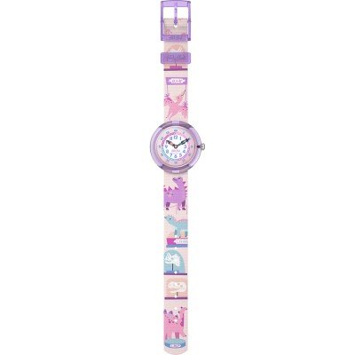 Zegarek marki Flik Flak ma Tworzywa sztuczne pochodzenia biologicznego kopertę 29.5 mm średnicy i jest wyposażony w pasek z materiału Z materiału. Wewnątrz koperty jest mechanizm ETA i zegarek ma także szkiełko Akryl.