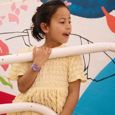 Zegarek marki Flik Flak ma Tworzywa sztuczne pochodzenia biologicznego kopertę 30 mm średnicy i jest wyposażony w pasek z materiału Z materiału. Wewnątrz koperty jest mechanizm ETA i zegarek ma także szkiełko Akryl.