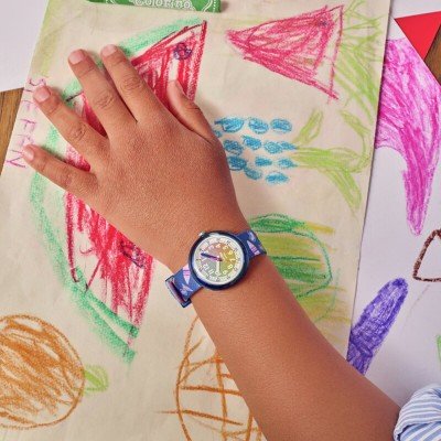 Zegarek marki Flik Flak ma Tworzywa sztuczne pochodzenia biologicznego kopertę 30 mm średnicy i jest wyposażony w pasek z materiału Z materiału. Wewnątrz koperty jest mechanizm ETA i zegarek ma także szkiełko Akryl.