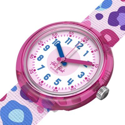 Zegarek marki Flik Flak ma Tworzywa sztuczne pochodzenia biologicznego kopertę 30 mm średnicy i jest wyposażony w pasek z materiału Z materiału. Wewnątrz koperty jest mechanizm ETA i zegarek ma także szkiełko Akryl.