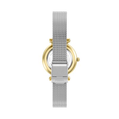 Zegarek marki Fossil ma stal chirurgiczna kopertę 28 mm średnicy i jest wyposażony w pasek z materiału stal chirurgiczna. Wewnątrz koperty jest mechanizm Seiko Instruments Inc. i zegarek ma także szkiełko Mineralny.