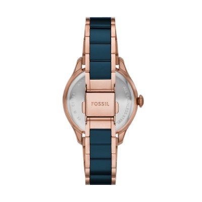 Zegarek marki Fossil ma stal chirurgiczna kopertę 38 mm średnicy i jest wyposażony w pasek z materiału Ceramiczny. Wewnątrz koperty jest mechanizm Miyota i zegarek ma także szkiełko Mineralny.