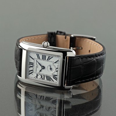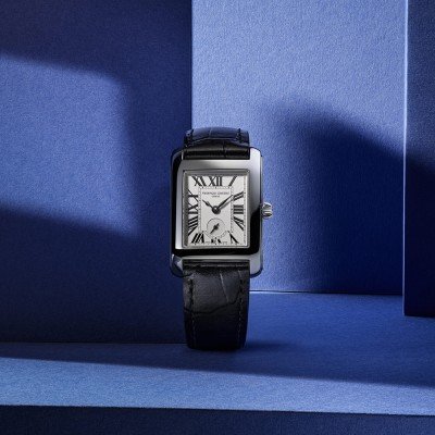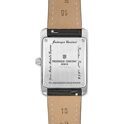 Projekt Frederique Constant Classics Carrée został zainspirowany ruchem Art Deco z lat dwudziestych i trzydziestych XX wieku, z jego prostymi, napiętymi liniami i wyszukanymi geometrycznymi kształtami. Styl, który - w ciągu stu lat - nie stracił nic ze swojej atrakcyjności i pozostaje popularny wśród entuzjastów designu i zegarków. Wskazówki godzinowa i minutowa tykają wzdłuż "tarczy sektorowej", znanej również jako "tor kolejowy", tak typowej dla epoki. Niezależny mały sekundnik jest umieszczony na godzinie 6 z lekko zagłębioną płaszczyzną. Kolejnym elementem projektu "Deco" jest koronka w kształcie cebuli, będąca hołdem dla zegarków kieszonkowych, które ten typ zegarka powoli zastępował jako codzienny zegarek dla każdego. Tak klasyczny jak styl, pod spodem kryje się nowoczesny szwajcarski mechanizm FC-235 (oparty na Ronda 1064) zapewniający najwyższą dokładność.