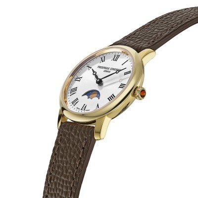 Zegarek marki Frederique Constant ma stal chirurgiczna kopertę 30 mm średnicy i jest wyposażony w pasek z materiału skóra. Wewnątrz koperty jest mechanizm Frederique Constant i zegarek ma także szkiełko Sapphire.