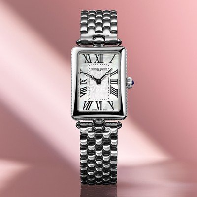 Classics Art Déco Carrée po prostu emanuje wyrafinowaniem. Prostokątna koperta - tak typowa dla zegarków Art Déco - ma karbowaną krawędź, uzupełnioną równie karbowaną kaboszonową koronką, wysadzaną niebieskim kamieniem. Elegancka tarcza ma zewnętrzną krawędź z masy perłowej z metalową wstawką z giloszowanym wzorem pajęczyny, cyframi rzymskimi i wskazówkami Breguet. Błyszcząca bransoleta ze stali szlachetnej z ziarnami ryżu dopełnia wygląd, który jest luksusowy i stanowi wyważone połączenie nowoczesnych materiałów i estetyki vintage, która celebruje kobiecość.