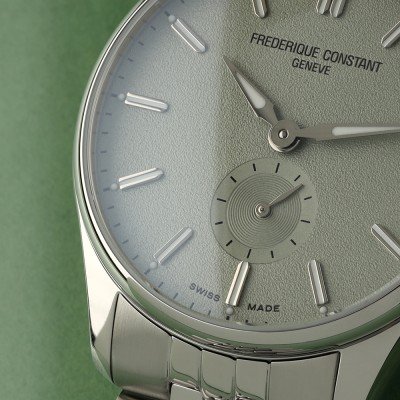 Zwodniczo prosty projekt, taki jak ten zegarek "Index", nie pozostawia miejsca na błędy. I właśnie w tej subtelności Frederique Constant pokazuje, że jest mistrzem swojego rzemiosła. Detale tego zegarka są wysublimowane: bardzo starannie wykończone indeksy i wskazówki z wkładkami lumenowymi oraz subtelne kropki lumenowe wskazujące godziny i skromny, niezależny sekundnik na godzinie 6; uchwycone w pięknie wypolerowanej obudowie i piaskowanej tarczy.