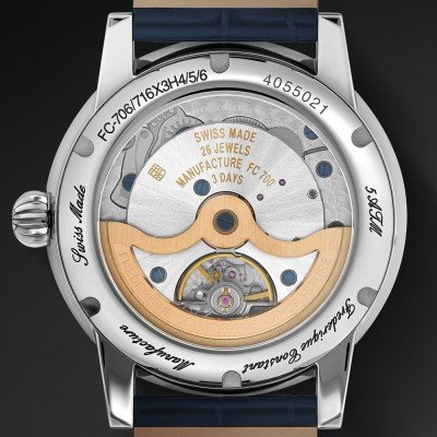 Nowy Manufacture Classic Date pozostaje wierny tradycyjnemu zegarmistrzostwu z nowoczesnym podejściem. Czyni to poprzez przyjęcie innego podejścia stylistycznego i technicznego niż jego poprzednicy. Nowy model to przede wszystkim wyrafinowanie, począwszy od odchudzonej koperty o średnicy 40 mm zamiast 42 mm wcześniejszych modeli z tej kolekcji. Podczas tworzenia nowego czasomierza Manufacture w Frederique Constant, projektant i inżynier pracują ramię w ramię. Projektant odpowiada za kształt zewnętrzny zegarka, a inżynier tworzy mechanizm. Model Classic Date Manufacture wyposażono w nowo opracowany kaliber FC-706 z 72-godzinną rezerwą chodu i imponującą pięcioletnią gwarancją. Tarcza zegarka jest wolna od bałaganu; smukłe znaczniki godzin i "szynowy" okrąg minutowy otaczają tarczę słoneczną, która zawiera małą tarczę daty na godzinie szóstej. Mniejszy rozmiar w rzeczywistości sprawia, że tarcza wygląda na stosunkowo większą i bardziej otwartą niż wcześniej, a wykończenie w stylu sunburst nadaje jej delikatny, elegancki połysk.