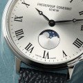 Zegarek Frederique Constant Classics Moonphase to dokładny czasomierz kwarcowy, który łączy klasyczny styl z codzienną funkcjonalnością. Wyrafinowana komplikacja fazy księżyca jest idealnie umieszczona na godzinie 6 na dobrze wyważonej i bardzo czytelnej tarczy z cyframi rzymskimi. W pozłacanej, polerowanej kopercie o średnicy 39 mm znajduje się mechanizm kwarcowy FC-206 o żywotności baterii nie krótszej niż 60 miesięcy. Elegancki i wyrafinowany zegarek dla mężczyzny, który ceni sobie lepsze rzeczy w życiu.