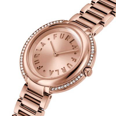 Zegarek marki Furla ma stal chirurgiczna kopertę 38 mm średnicy i jest wyposażony w pasek z materiału stal chirurgiczna.