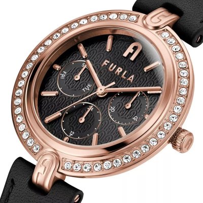 Zegarek marki Furla ma stal chirurgiczna kopertę 37 mm średnicy i jest wyposażony w pasek z materiału skóra. Wewnątrz koperty jest mechanizm Miyota i zegarek ma także szkiełko Mineralny.