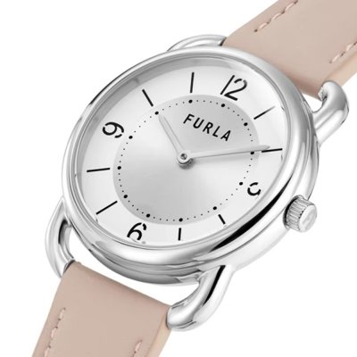 Zegarek marki Furla ma stal chirurgiczna kopertę 32 mm średnicy i jest wyposażony w pasek z materiału skóra. Wewnątrz koperty jest mechanizm Miyota i zegarek ma także szkiełko Mineralny.