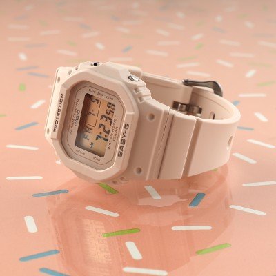Zegarek marki G-Shock ma Plastik / Żywica syntetyczna kopertę 37.9 mm średnicy i jest wyposażony w pasek z materiału Żywica. Wewnątrz koperty jest mechanizm Casio i zegarek ma także szkiełko Mineralny.