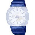 Pasek do zegarka G-Shock jest wykonany z materiału Żywica i jest zamocowany do zegarka za pomocą… kołki sprężyste. Ten pasek ma szerokość 26 mm i zamyka się za pomocą sprzączka. Ten pasek nie ma prostego mocowania, co oznacza, że pasuje wyłącznie do zegarków z poniższej listy.
