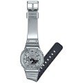 Zegarek marki G-Shock ma Stal nierdzewna i żywica kopertę 44.4 mm średnicy i jest wyposażony w pasek z materiału guma. Wewnątrz koperty jest mechanizm Casio i zegarek ma także szkiełko Mineralny.