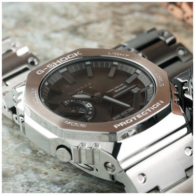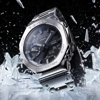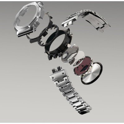 Zegarek marki G-Shock ma stal chirurgiczna kopertę 44.4 mm średnicy i jest wyposażony w pasek z materiału metal. Wewnątrz koperty jest mechanizm Casio i zegarek ma także szkiełko Mineralny.