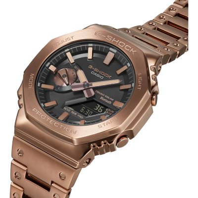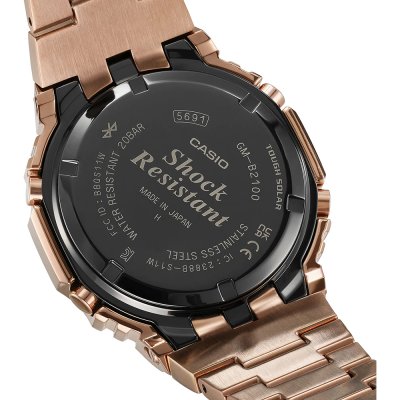 Zegarek marki G-Shock ma stal chirurgiczna kopertę 44.4 mm średnicy i jest wyposażony w pasek z materiału metal. Wewnątrz koperty jest mechanizm Casio i zegarek ma także szkiełko Mineralny.