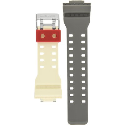 Pasek do zegarka G-Shock jest wykonany z materiału plastik/Żywica syntetyczna i jest zamocowany do zegarka za pomocą… kołki sprężyste. Ten pasek ma szerokość 29 mm i zamyka się za pomocą sprzączka. Ten pasek nie ma prostego mocowania, co oznacza, że pasuje wyłącznie do zegarków z poniższej listy.