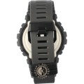 Zegarek marki G-Shock ma Plastik / Żywica syntetyczna kopertę 48.6 mm średnicy i jest wyposażony w pasek z materiału guma. Wewnątrz koperty jest mechanizm Casio i zegarek ma także szkiełko Mineralny.