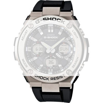 Pasek do zegarka G-Shock jest wykonany z materiału plastik/Żywica syntetyczna i jest zamocowany do zegarka za pomocą… Śrubka mocowania paska. Ten pasek ma szerokość 26 mm i zamyka się za pomocą sprzączka. Ten pasek nie ma prostego mocowania, co oznacza, że pasuje wyłącznie do zegarków z poniższej listy.