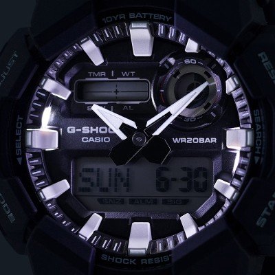 Zegarek marki G-Shock ma Tworzywa sztuczne pochodzenia biologicznego kopertę 51.9 mm średnicy i jest wyposażony w pasek z materiału Tworzywa sztuczne pochodzenia biologicznego. Wewnątrz koperty jest mechanizm Casio i zegarek ma także szkiełko Mineralny.