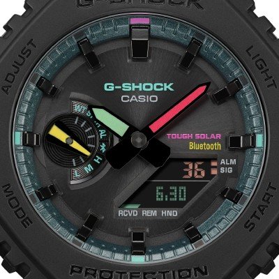 Zegarek marki G-Shock ma Żywica wzmacniana węglowo kopertę 45.4 mm średnicy i jest wyposażony w pasek z materiału Żywica. Wewnątrz koperty jest mechanizm Casio i zegarek ma także szkiełko Mineralny.