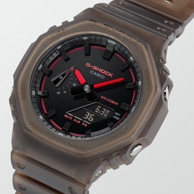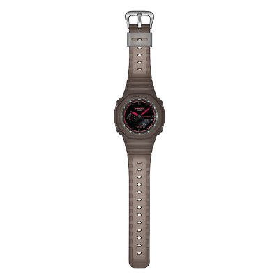 Zegarek marki G-Shock ma Tworzywa sztuczne pochodzenia biologicznego kopertę 45.4 mm średnicy i jest wyposażony w pasek z materiału Tworzywa sztuczne pochodzenia biologicznego. Wewnątrz koperty jest mechanizm Casio i zegarek ma także szkiełko Mineralny.