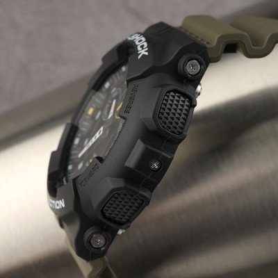 Zegarek marki G-Shock ma Plastik / Żywica syntetyczna kopertę 51.2 mm średnicy i jest wyposażony w pasek z materiału Żywica. Wewnątrz koperty jest mechanizm Casio i zegarek ma także szkiełko Mineralny.