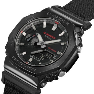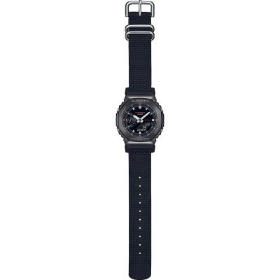 Zegarek marki G-Shock ma Stal nierdzewna i żywica kopertę 44.4 mm średnicy i jest wyposażony w pasek z materiału Z materiału. Wewnątrz koperty jest mechanizm Casio i zegarek ma także szkiełko Mineralny.