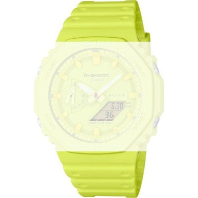 Pasek do zegarka G-Shock jest wykonany z materiału tworzywa sztuczne pochodzenia biologicznego i jest zamocowany do zegarka za pomocą… bolec quick release. Ten pasek ma szerokość 26 mm i zamyka się za pomocą sprzączka. Ten pasek nie ma prostego mocowania, co oznacza, że pasuje wyłącznie do zegarków z poniższej listy.