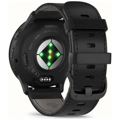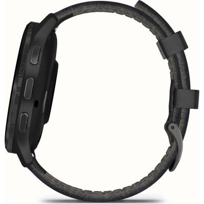 Zegarek marki Garmin ma Żywica wzmocniona włóknem kopertę 45 mm średnicy i jest wyposażony w pasek z materiału skóra. Wewnątrz koperty jest mechanizm Garmin i zegarek ma także szkiełko Szkiełko Corning Gorilla Glass 3.