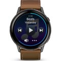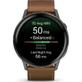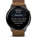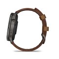 Zegarek marki Garmin ma Żywica wzmocniona włóknem kopertę 45 mm średnicy i jest wyposażony w pasek z materiału skóra. Wewnątrz koperty jest mechanizm Garmin i zegarek ma także szkiełko Szkiełko Corning Gorilla Glass 3.