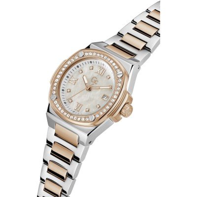 Zegarek marki GC ma stal chirurgiczna kopertę 30 mm średnicy i jest wyposażony w pasek z materiału stal chirurgiczna. Wewnątrz koperty jest mechanizm Ronda i zegarek ma także szkiełko Szkiełko mineralne pokryte warstwą szafirową.